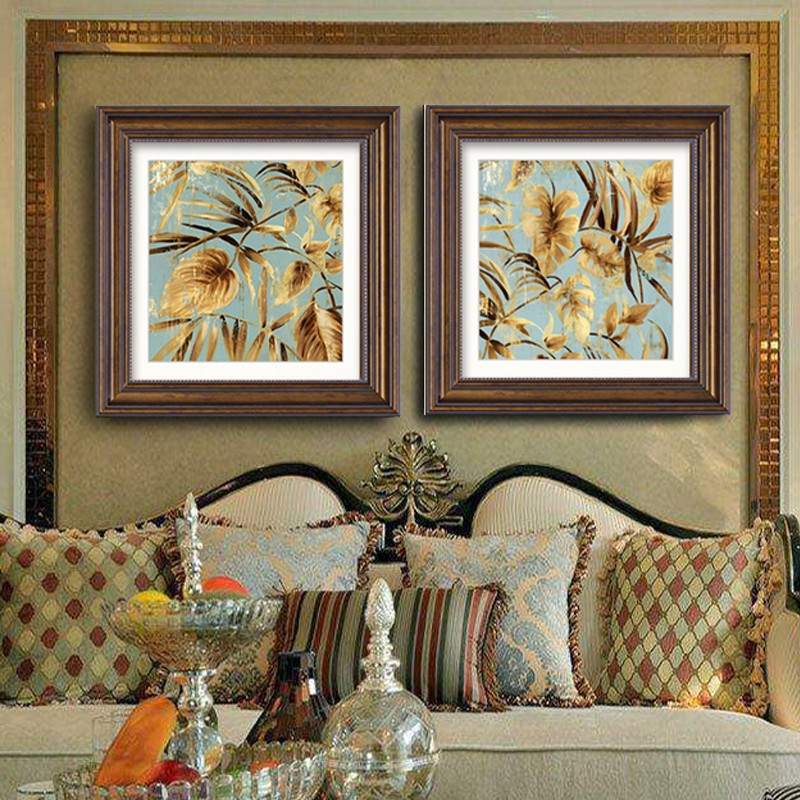 餐廳裝飾畫客廳沙發(fā)背景墻壁畫飯廳掛畫 北歐現(xiàn)代抽象樹葉系列 金葉子