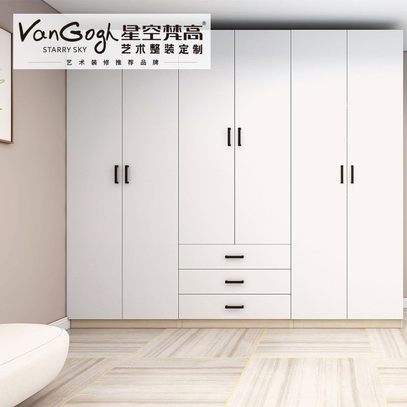 【星空梵高】現(xiàn)代簡(jiǎn)約整體定制衣柜 巴克卡爾·玉石白+艾格黃橡衣柜